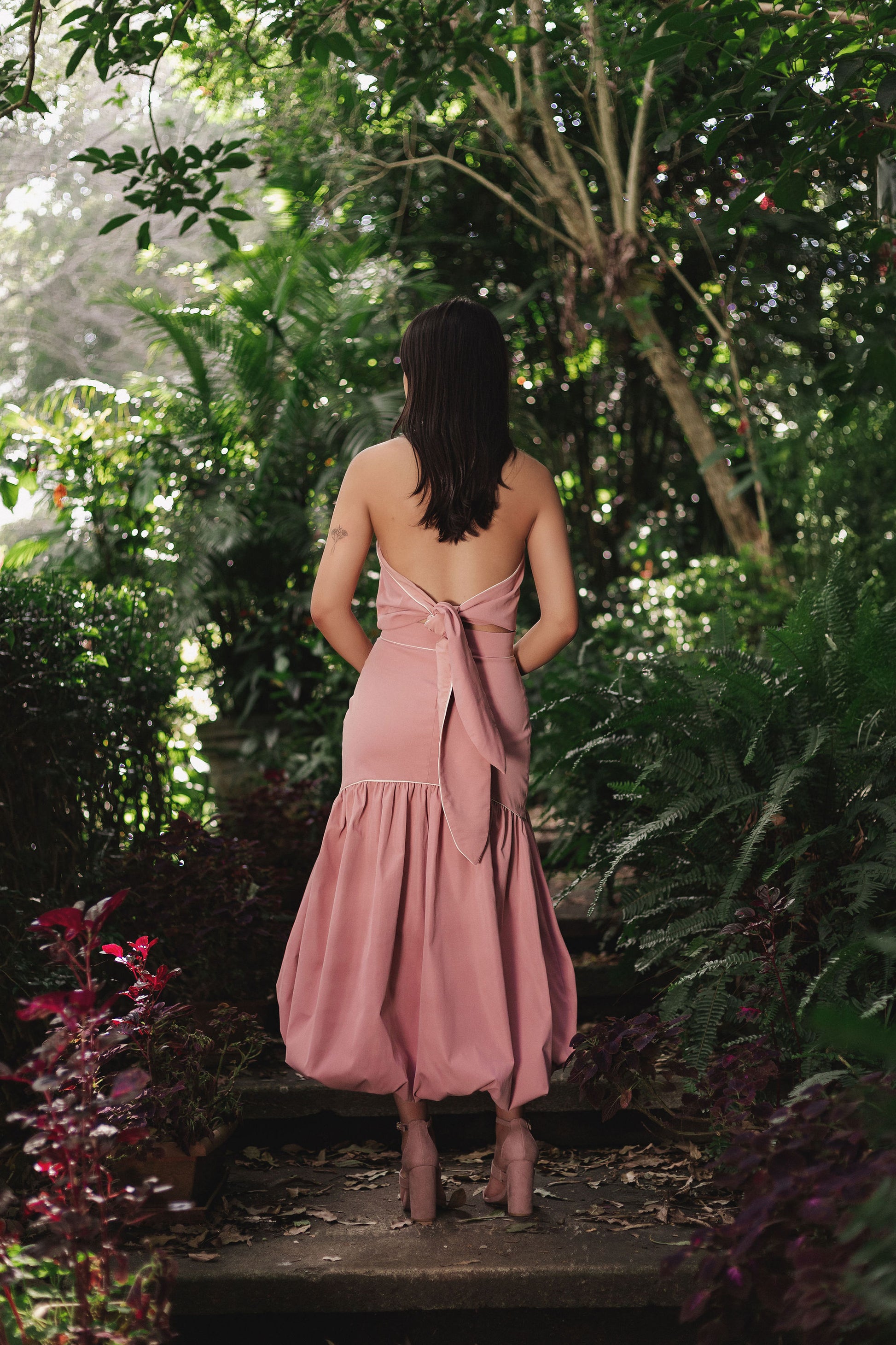 Este set está diseñado para destacar con sutileza y elegancia. Su falda midi tipo globo aporta volumen y movimiento, mientras la blusa de cuello alto y espalda descubierta equilibra el look con un toque sofisticado y moderno. Un conjunto pensado para mujeres que aman sentirse románticas, auténticas y únicas.